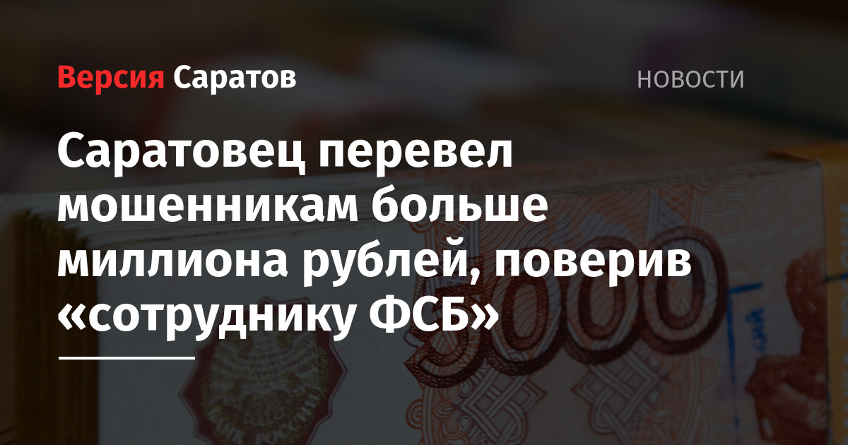Саратовец перевел мошенникам больше миллиона рублей, поверив «сотруднику ФСБ»