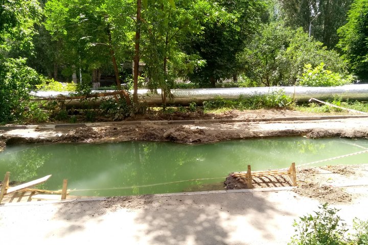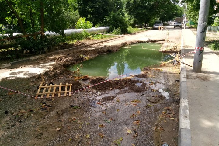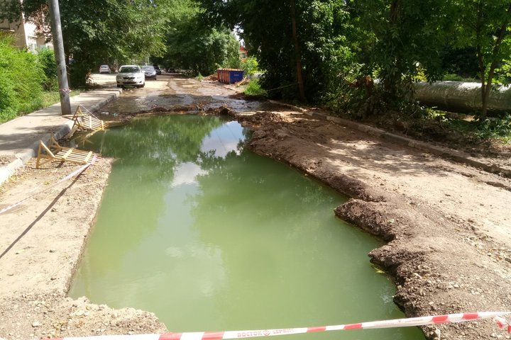 «Озеро», скорее всего, очень глубокое, из него интенсивно вытекает вода, которая спускается в сторону городского парка. Коммунальная авария была зафиксирована в начале недели. Рабочие огородили место происшествия, однако если туда полезут дети, то может случиться беда. Дорога полностью перекрыта», — рассказал местный житель.