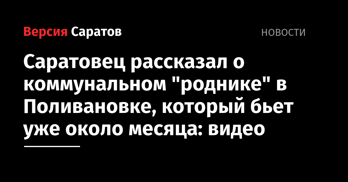Читатель ИА "Версия-Саратов" прислал видео коммунальной аварии, которая продолжается около месяца в поселке Поливановка Ленинского района.