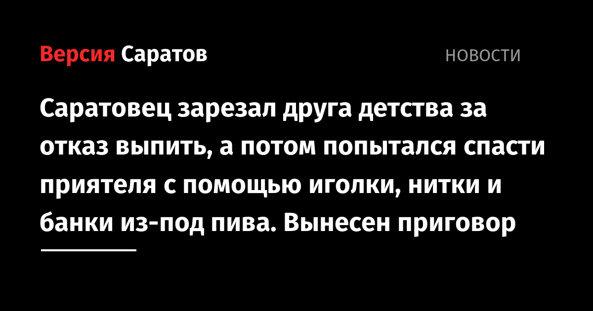 Была проведена экспертиза, которая показала, что причиной смерти потерпевшего стало проникающее колото-резаное ранение груди слева с повреждением сердца, массивная кровопотеря. В итоге суд назначил 44-летнему саратовцу наказание в виде 9 лет 6 месяцев лишения свободы в колонии строгого режима.