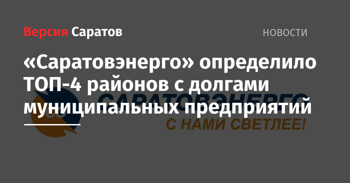 Четвертую «почётную» строчку заняло ЗАТО Светлый с двумя «флагманами»: МУП «ЖКХ» Городского округа ЗАТО Светлый и МУП «Коммунальные системы». Совокупная задолженность данных предприятий составляет 112,4 млн рублей. Отметим, что обладатель «медной» медали год назад — Ртищевский район — показал существенное снижение долга с 98,5 до 57,2 млн рублей за счёт банкротства МУП «Водозабор» с долгом в 65 млн рублей.