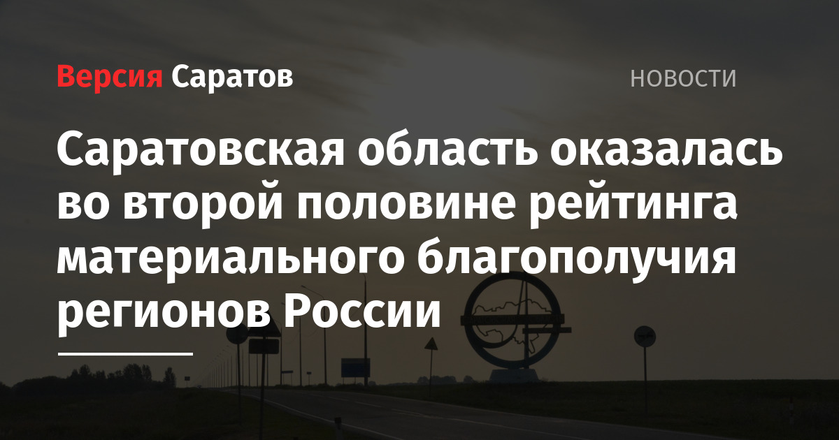 По России Саратовская область занимает 68 из 85 место в рейтинге материального благополучия. Это следует из исследования, опубликованного РИА Новости.