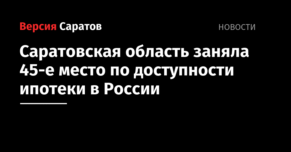 Саратовская область заняла 45-е место по доступности ипотеки среди российских регионов. По данным за 2017 год, 24% семей со средним доходом здесь могут рассчитывать на покупку типовой квартиры. В прошлом году эта доля составляла всего 12,4%.