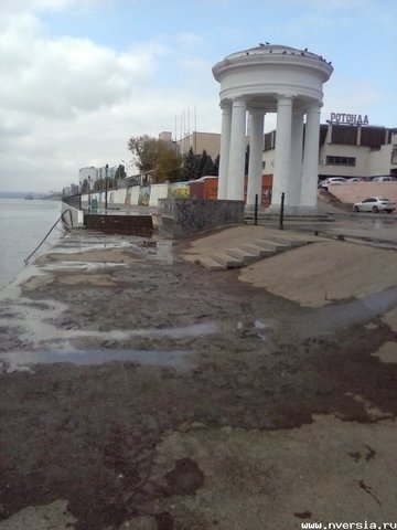 В редакцию ИА "Версия-Саратов" обратились молодожёны, которые сыграли свадьбу в минувшую субботу, 27 сентября. По словам новоиспеченной супруги Галины, сразу после регистрации брака они поехали на Набережную Космонавтов, к ротонде: "Я чуть со стыда не сгорела за свой город. На Бабушкином взвозе наш кортеж наткнулся на яму, наполненную грязной водой. Она была плохо огорожена — возле нее стояли три переносных заборчика и два сломанных стула. Вода текла из ямы водопадом вниз, к Волге. У ротонды всё это превращалось в грязевое озеро. Асфальт с заплатками и корявая лестница дополняли картину. Фотограф не знал, как исхитриться, чтобы это всё не попало в кадр. Иногородние гости смотрели с недоумением: "И это самое красивое место вашего города?". Мы с супругом жалеем, что решили поехать в это место".