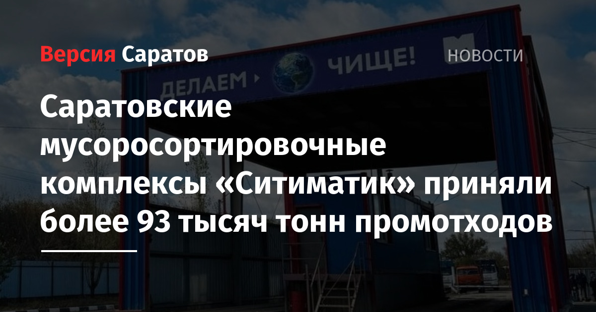 Саратовские мусоросортировочные комплексы «Ситиматик» приняли более 93 тысяч тонн промотходов