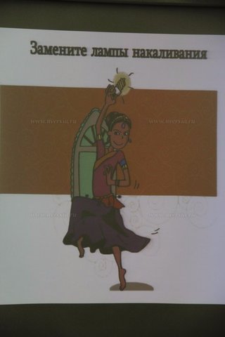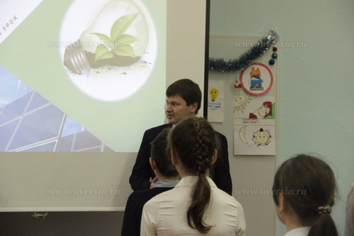 В частности, Дмитрий Тепин посоветовал сменить дома лампы накаливания на энергосберегающие, не держать воду постоянно включенной при чистке зубов и мытье посуды. Министр также рассказал о том, что удаление накипи из электрического чайника позволит уменьшить затраты на согревание воды. В конце урока школьники спели министру об энергосбережении.