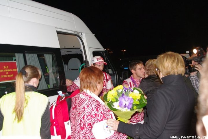 В аэропорту спортсменов встречали друзья и родственники, державшие не только традиционные букеты, но и приветственные плакаты. Среди представителей власти в числе встречавших были замечены министр спорта Наиля Бриленок, министр соцразвития Лариса Колязина, и.о. заместителя главы администрации Саратова по соцсфере Ирина Колесникова. Невольно в их число попали и председатель комитета по охране окружающей среды и природопользованию области Андрей Андрющенко и депутат Госдумы Николай Панков, которые прилетели тем же рейсом, что и спортсмены, правда, судя по всему, даже не подозревали об этом. Николай Панков, в частности, был приятно удивлен, что его на входе в вип-зону аэропорта встречали камеры, а на выходе толпа скандировала «молодцы».