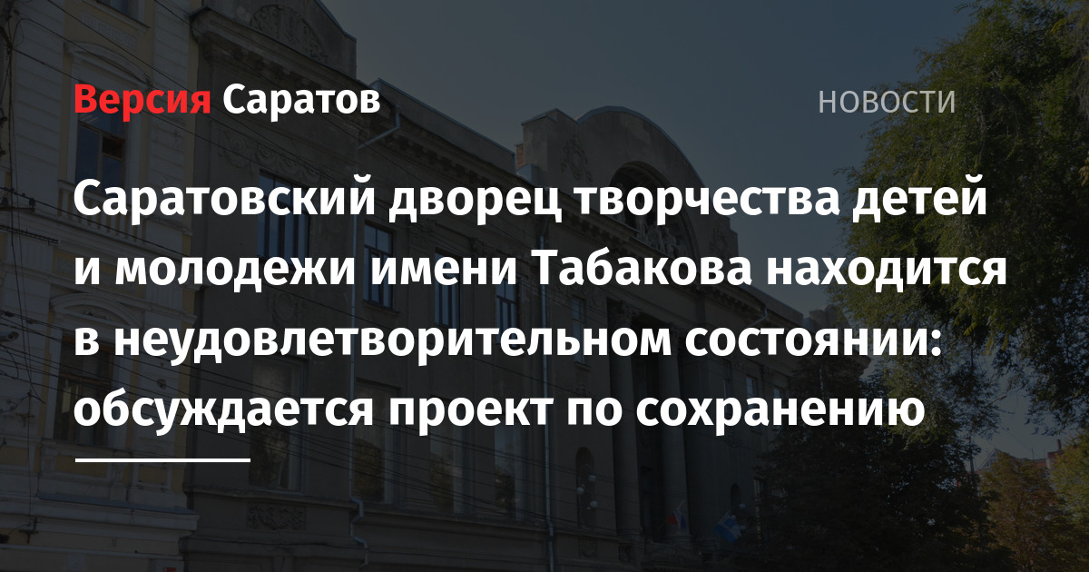 «В 1938 году здание стали переоборудовать. Для реконструкции здания были привлечены лучшие скульпторы и художники города: Миловидов Б. В., Бобров Б. П., Тимофеев Е. Ф. и другие. Автор скульптурной группы „Пионеры у костра“ на фасаде здания — В. И. Кравцов. 11-го сентября 1940 года состоялось его открытие, однако дети недолго занимались в новом помещении. С начала войны здание было отдано под госпиталь, о чём ныне свидетельствует памятная доска на фасаде. После капитального ремонта в 1946 году Дворец пионеров снова распахнул свои двери для детей. С апреля 2001 года Дворец творчества детей и молодежи, в 2018 году дворцу было присвоено имя О. П. Табакова», — привели эксперты краткую историю здания в документе.