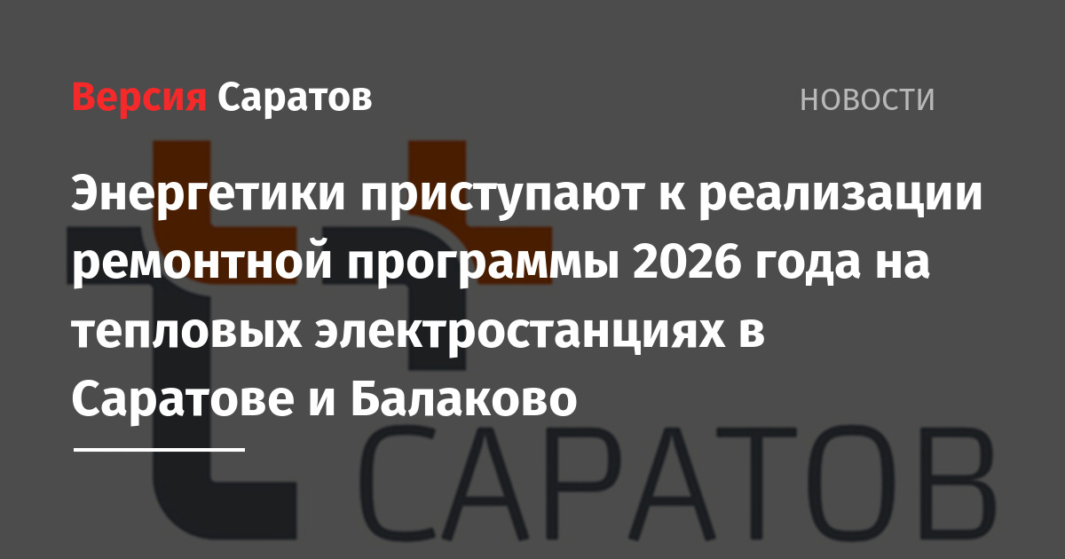 Энергетики приступают к реализации ремонтной программы 2026 года на тепловых электростанциях в Саратове и Балаково