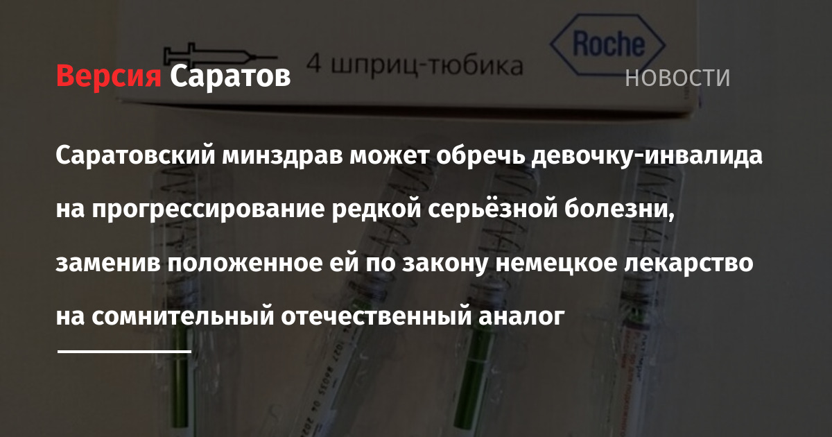 Министерство здравоохранения Саратовской области по-прежнему не приобрело для ребенка-инвалида нужное количество инъекций для проведения генно-инженерной биотерапии, необходимой для лечения редкого заболевания. О том, что из-за решения чиновников девочке-подростку задержали стационарное лечение, а необходимый ей препарат заменили на отечественный аналог, которого нет ни в одном медицинском назначении, корреспонденту ИА «Версия-Саратов» сообщил отец школьницы Игорь Бубнов.