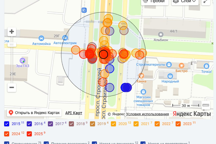 Оказалось, что самым опасным в России является перекресток в Саратове. Это пересечение проспекта Строителей и улицы академика Антонова. По подсчетам аналитиков, за 11 лет здесь произошло 90 аварий. В последние 5 лет на перекрестке случается в среднем 11,6 ДТП с пострадавшими в год.