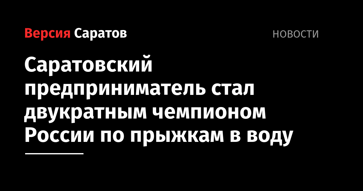 На завершившемся в Москве чемпионате России по прыжкам в воду среди любителей саратовский предприниматель Вячеслав Рыжов занял первое место. Наш земляк выступал на 10-метровой вышке в категории Masters в возрастной группе 43-47 лет.