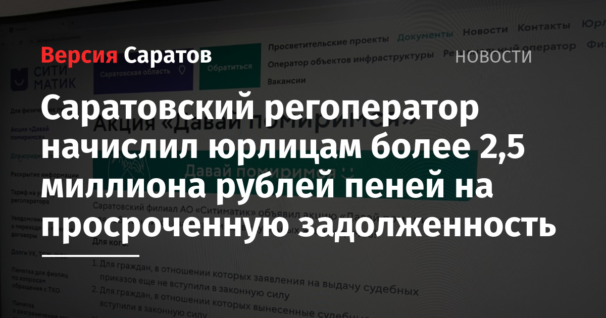 Саратовский регоператор начислил юрлицам более 2,5 миллиона рублей пеней на просроченную задолженность
