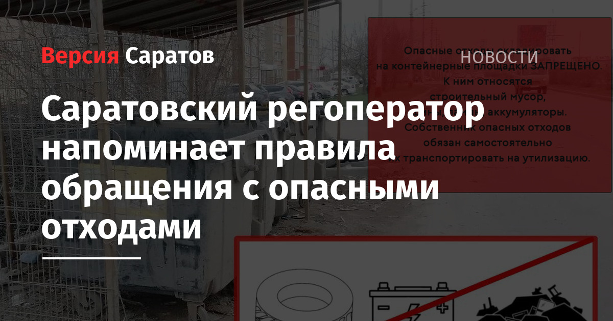В апреле–мае граждане начинают активно разбирать кладовки, балконы и гаражи, избавляясь от отслуживших предметов, среди которых оказываются старые аккумуляторы, ртутные лампы, резиновые покрышки, машинные масла и т. п. Саратовский филиал «Ситиматик» в преддверии периода весеннего расхламления напоминает жителям региона о правилах обращения с опасными отходами.