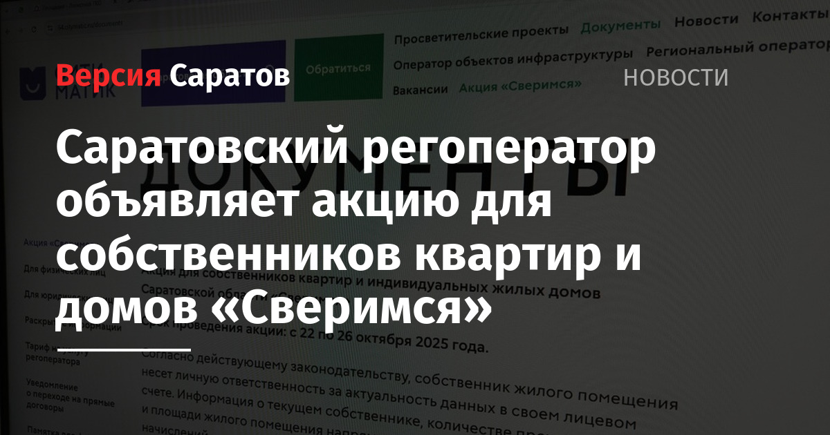 Региональный оператор по обращению с ТКО проводит акцию для собственников квартир и индивидуальных жилых домов Саратовской области «Сверимся». Акция стартует 13-го октября и продлится две недели.