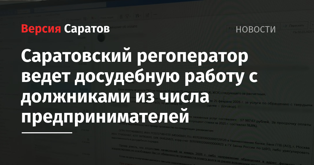 Саратовский регоператор ведет досудебную работу с должниками из числа предпринимателей
