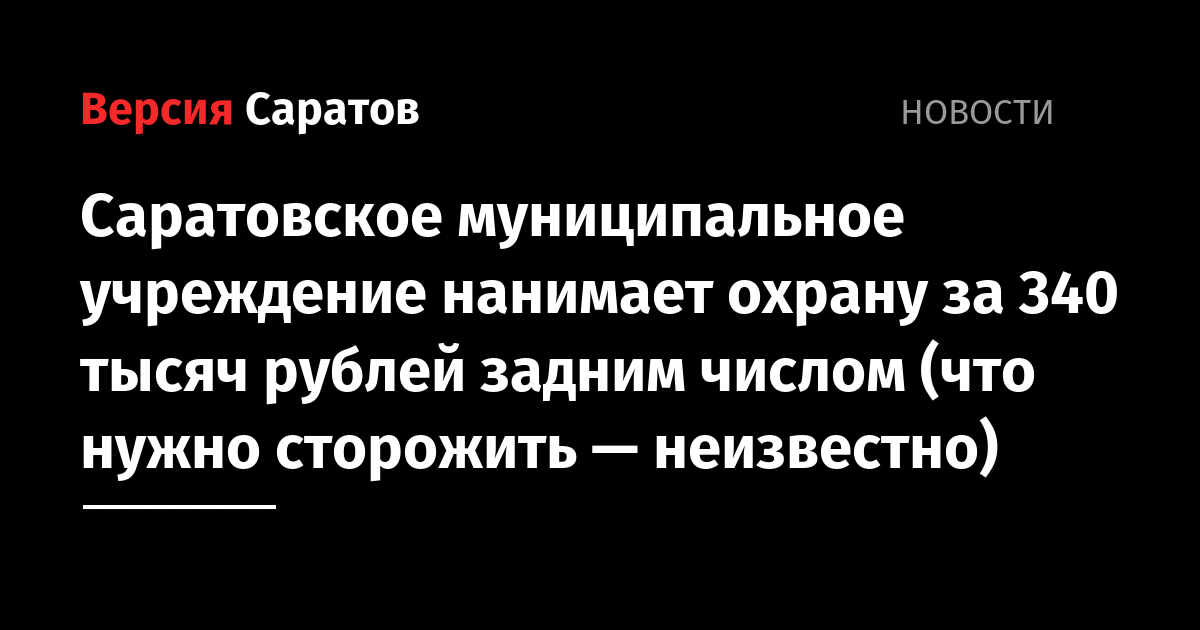 Саратовское муниципальное учреждение нанимает охрану за 340 тысяч рублей задним числом (что нужно сторожить — неизвестно)