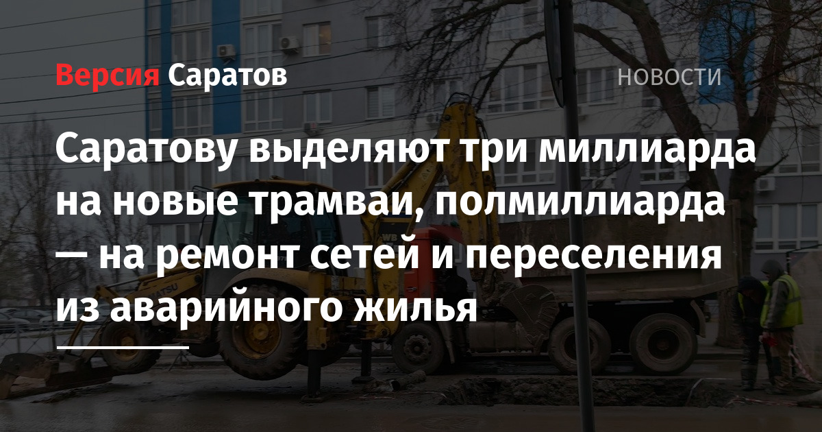 Доходы и расходы областного бюджета на 2025 год предлагается увеличить в целом на 3 млрд 135 млн рублей за счет поступлений от других бюджетов бюджетной системы РФ и организаций. На приобретение новых трехсекционных трамваев для маршрута № 4 в Саратове предусмотрено 2,84 млрд рублей с учетом областной доли. Также областной центр получит 401,7 млн рублей на ремонт водопроводных сетей и 86,9 млн рублей — на переселения из аварийного жилья. По всей видимости, имеется в виду частично обрушившийся дом № 3 по улице Крымская.
