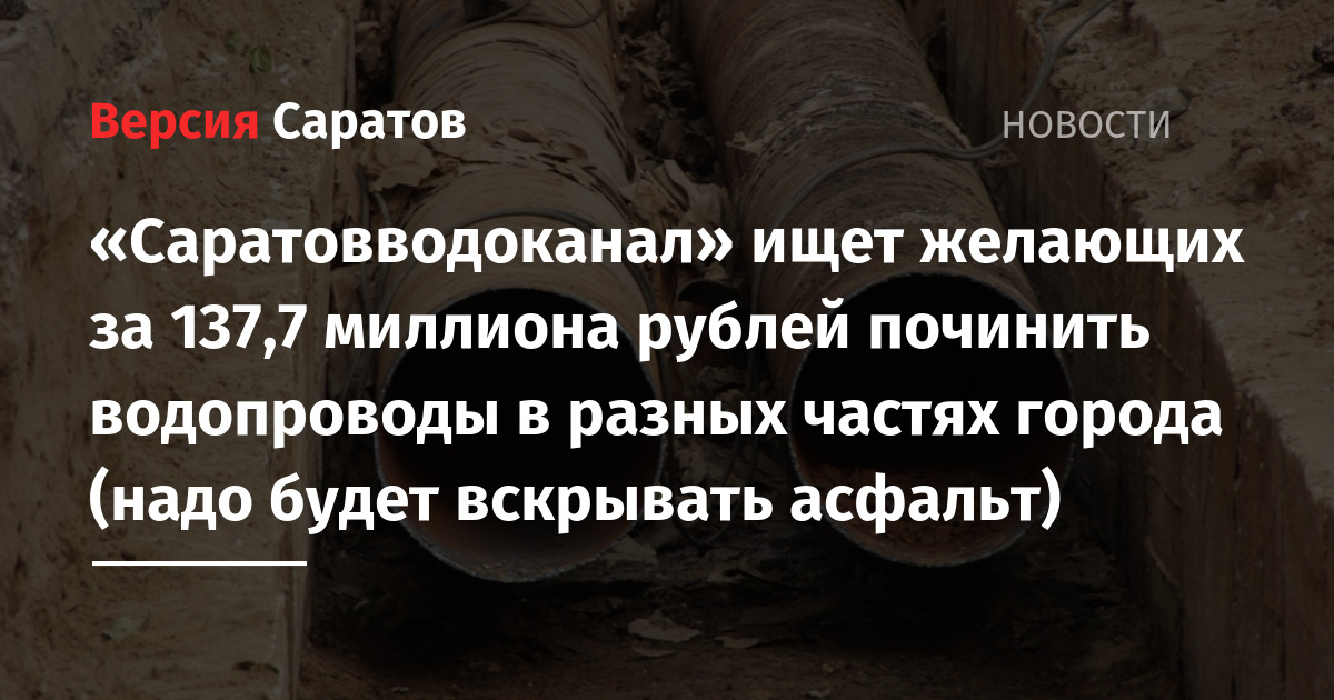«Саратовводоканал» ищет желающих за 137,7 миллиона рублей починить водопроводы в разных частях города (надо будет вскрывать асфальт)