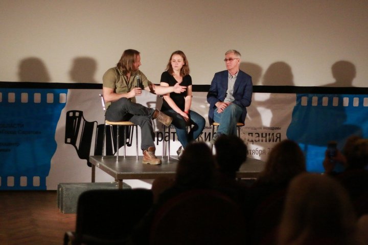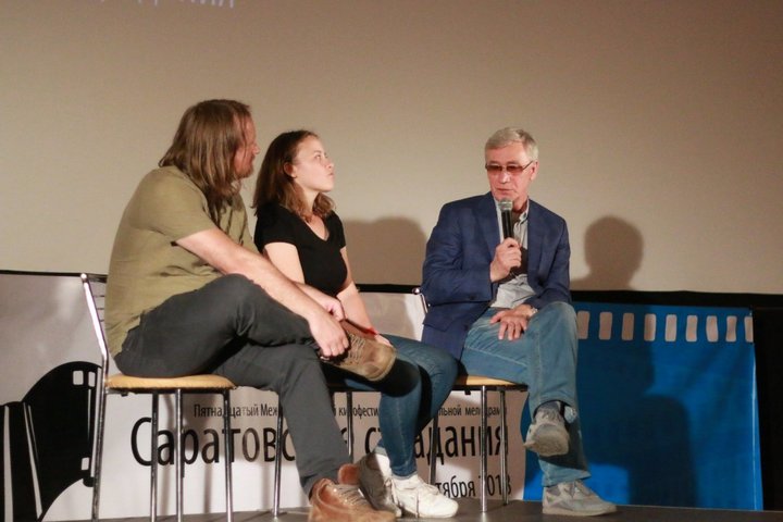 Обсуждение прошло в диалоге с писателем, драматургом, сценаристом, финалистом премий «Большая книга», «Букер» Алексеем Слаповским (Москва), который родился в Саратовской области. «Очень понравилась музыка. Это не самое главное, но очень понравилась. По своему опыту знаю, что картинка и музыка сочетаются хорошо крайне редко. Здесь случай приятный, я вижу совмещенность изображения, звука, музыки. А слово стало полноправным героем фильма. Я увидел кадры, в которых много красоты, место, где земля была невинна и пуста», — поделился впечатлением писатель.