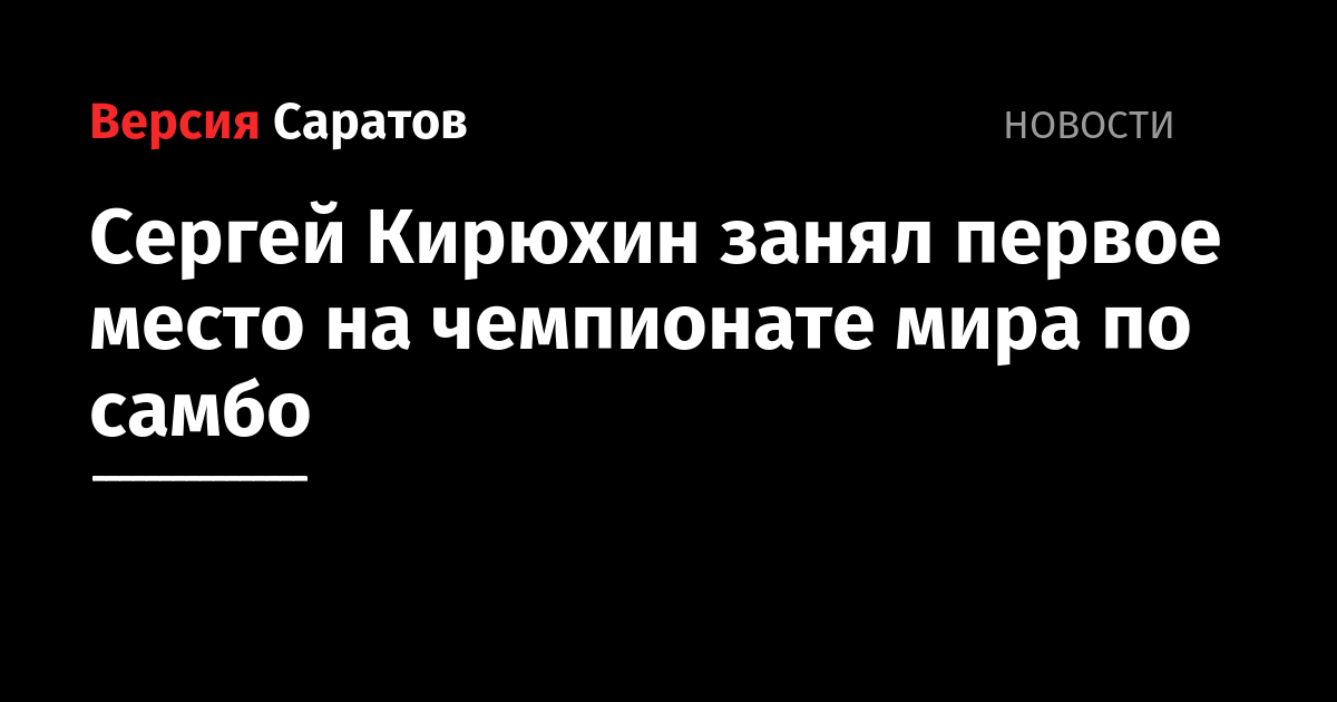 Воспитанник Ртищевской детско-юношеской спортивной школы Сергей Кирюхин, который в настоящее время выступает за Санкт-Петербург, завоевал второе "золото" чемпионата мира по самбо в своей спортивной карьере.