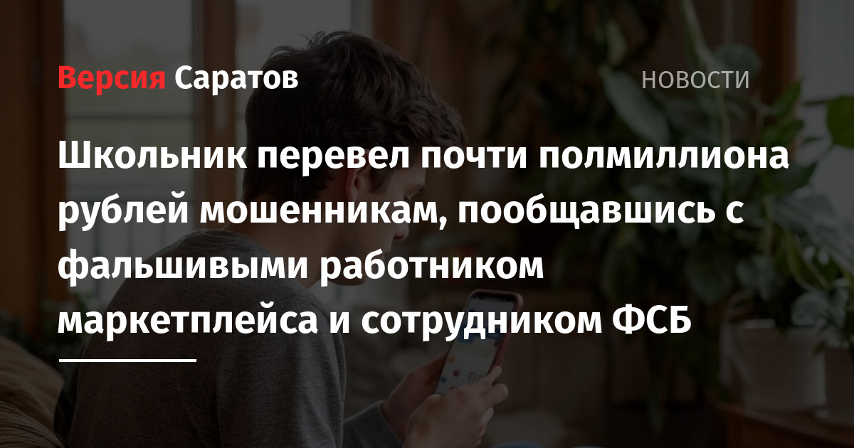 В Саратове 17-летний парень перевел мошенникам 395 тысяч рублей со счета матери. Как рассказали в УМВД России по Саратову, 21 февраля подростку позвонил неизвестный, который представился «работником» маркетплейса и попросил сообщить код из смс-сообщения за доставку товара. Молодой человек подумал, что посылку оформил дедушка и продиктовал цифры незнакомцу.