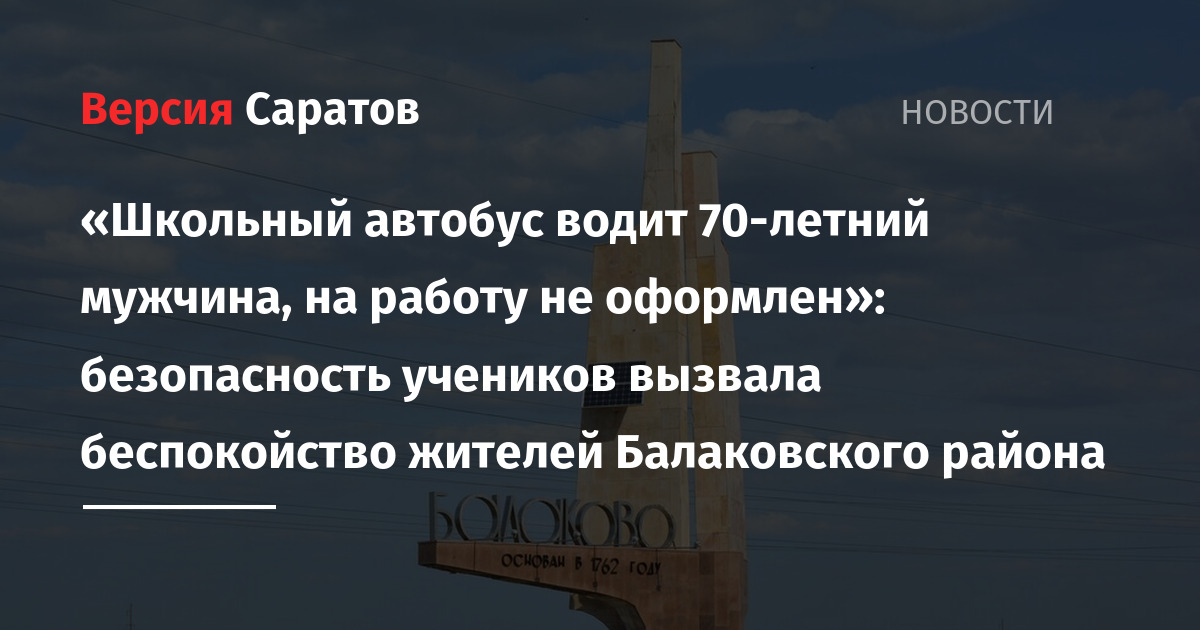 Из Балаковского района Саратовской области поступили жалобы на то, что в одном из сел муниципалитета школьный автобус якобы водит 70-летний мужчина, которого официально не оформили на работу. Подобная информация стала распространяться в социальной сети «ВКонтакте» и возмутила жителей муниципалитета.