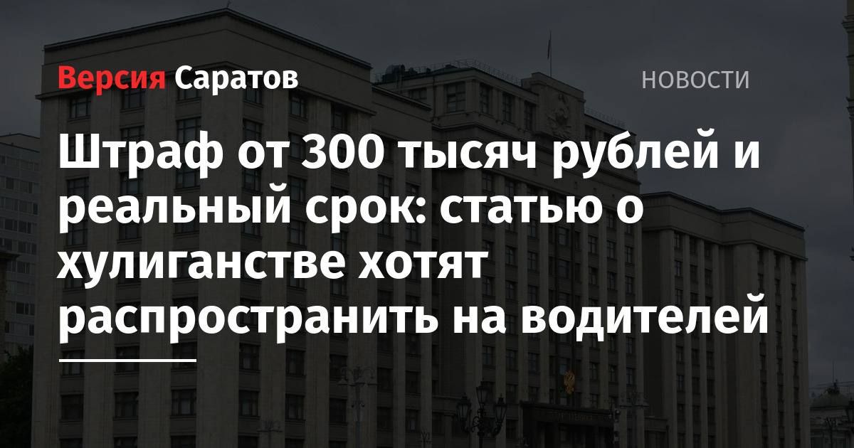 Сегодня в Госдуму внесен законопроект с поправками в Уголовный кодекс РФ. Предлагается пополнить статью 213 «Хулиганство» новым пунктом «г» следующего содержания: «лицом, управляющим транспортным средством, либо в отношении лица, управляющего транспортным средством».