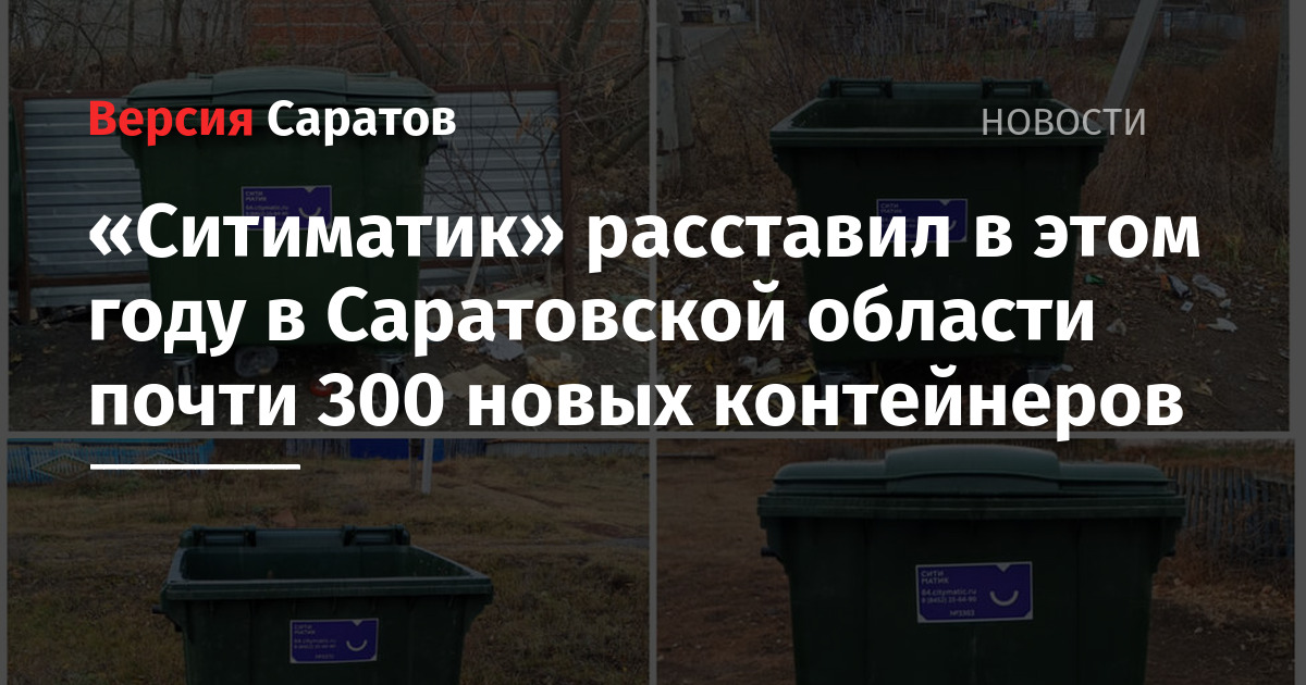 Саратовский филиал «Ситиматик» продолжает активно развивать коммунальную инфраструктуру по вывозу твердых коммунальных отходов на территории региона. В этом году в крупных городах и малых населенных пунктах было расставлено почти 300 новых контейнеров. Новые емкости расставлялись взамен пришедших в негодность или увеличивалось их количество на площадках.