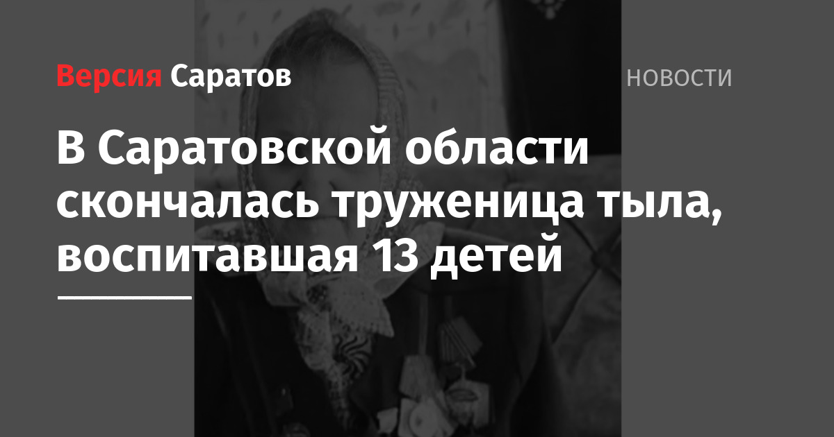 В Саратовской области скончалась труженица тыла, воспитавшая 13 детей