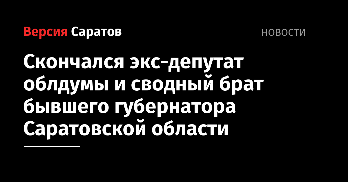 Скончался экс-депутат облдумы и сводный брат бывшего губернатора Саратовской области
