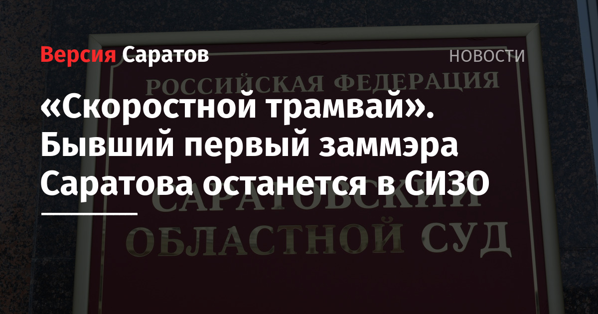 «Скоростной трамвай». Бывший первый заммэра Саратова останется в СИЗО