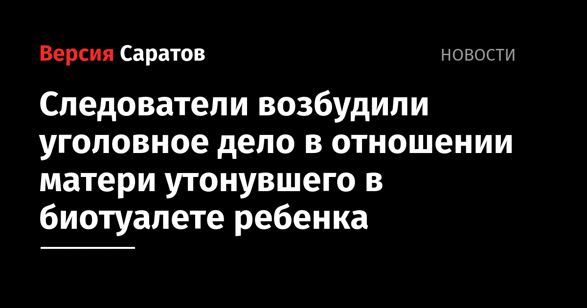 Сотрудники следственного комитета по Саратовской области возбудили уголовное дело в отношении 24-летней матери погибшего 9-месячного ребенка, который утонул в биотуалете. Об этом сообщает пресс-служба областного СУ СКР.