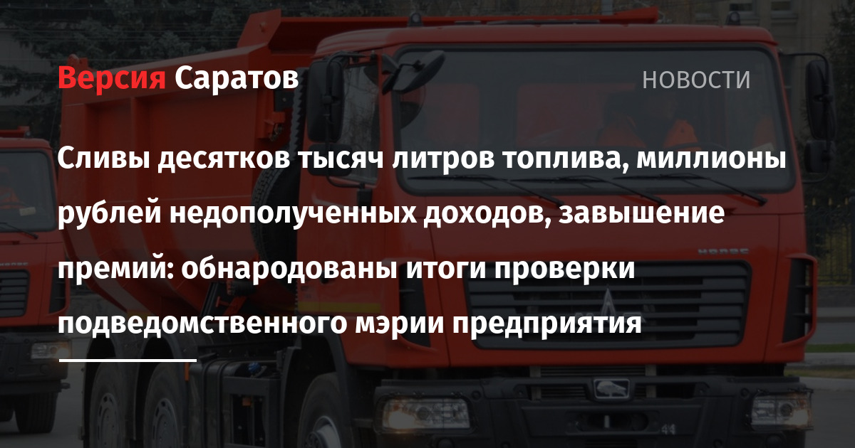 Контрольно-счетная палата Саратова проверила деятельность МКУ «Дорожник Заводского района» (бывшее МУП) и выявила многомиллионные убытки, факты слива топлива и неправомерного премирования. Результаты проверки за 2023–2025 годы были обнародованы на сайте КСП вчера, 30 сентября.