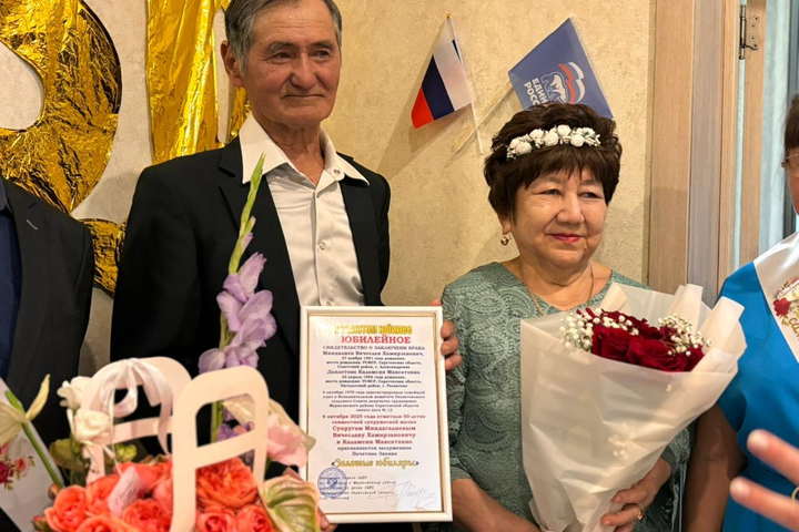 Поздравили Вячеслава и Каламсию Миндалиевых. «Вячеслав Хамирзанович, уроженец села Александровка Советского района, окончив автомеханический факультет СГТУ, стал инженером-механиком. Трудовой путь он начал в совхозе имени Майского Пленума ЦК КПСС (ныне село Раскатово), затем работал на АТП-3, МПК-403. Даже выйдя на заслуженный отдых в 2009 году, ещё долго делился своим опытом, работая главным механиком в марксовском АТП.