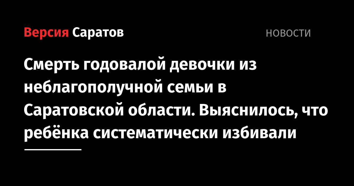 Смерть годовалой девочки из неблагополучной семьи в Саратовской области. Выяснилось, что ребёнка систематически избивали
