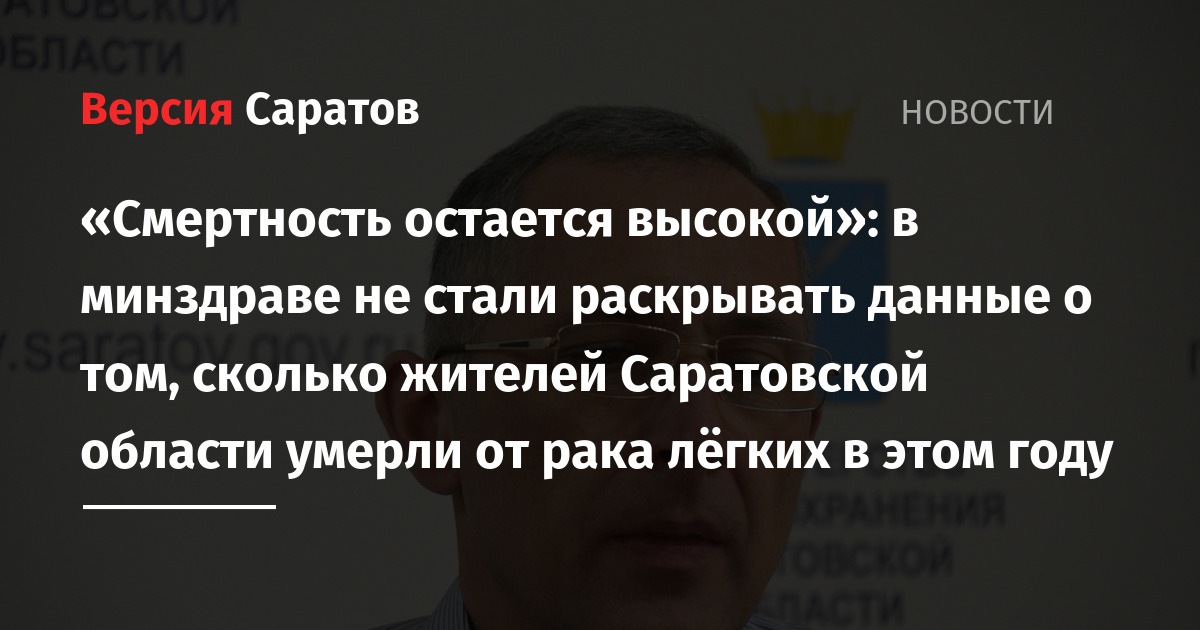 В региональном минздраве не стали отвечать на вопрос корреспондента ИА «Версия-Саратов» о том, сколько в этом году человек умели от рака лёгких.