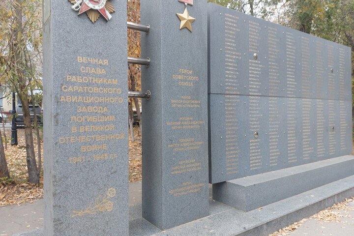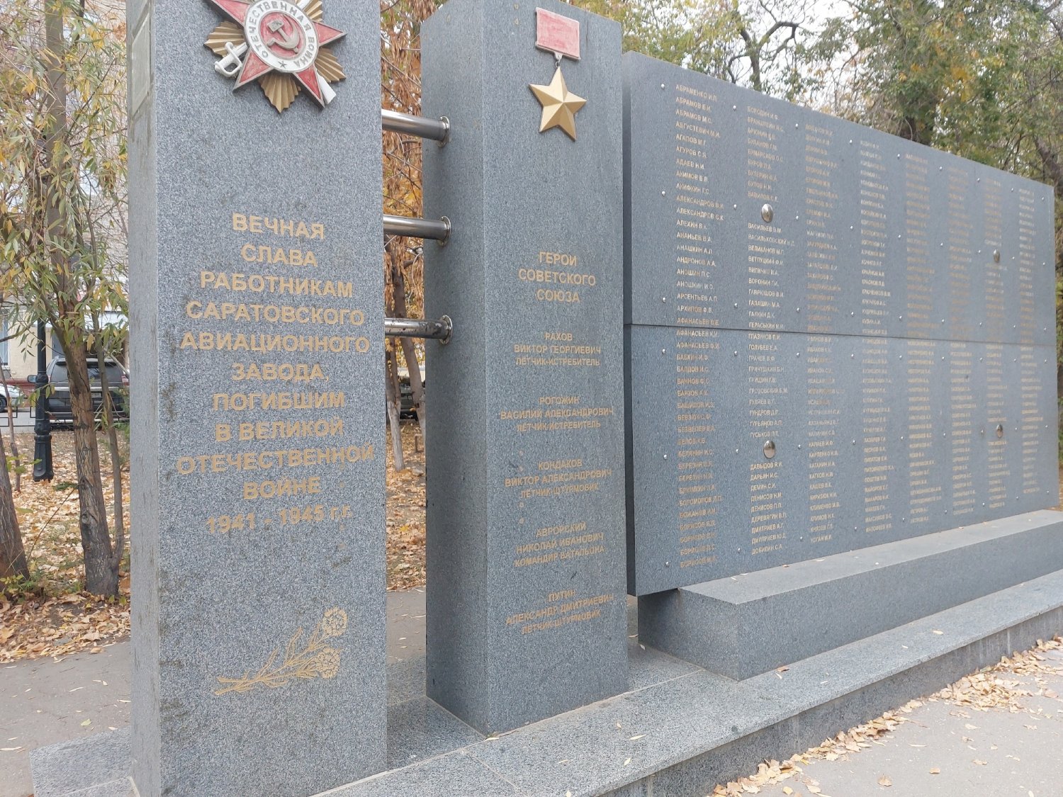 Мемориальный комплекс, посвященный саратовскому авиазаводу, был с помпой открыт в сквере Авиастроителей еще в 2013 году. На мероприятии присутствовали чиновники, представители регионального отделения «Единой России», общественники и бывшие сотрудники прекратившего свое существование предприятия.