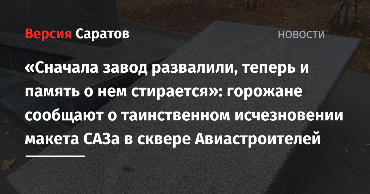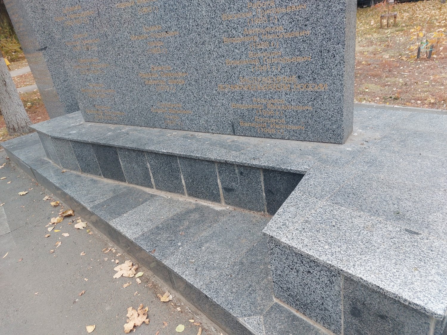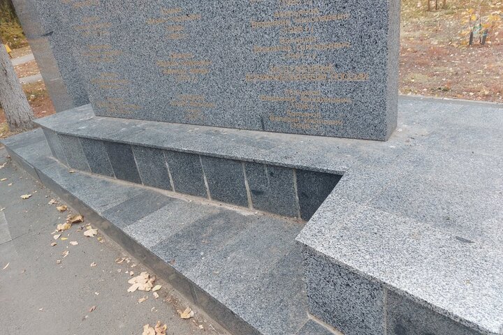 «Подошла к стеле, посвященной саратовскому авиазаводу, хотела получше рассмотреть и в итоге ничего не поняла. Там плита с надписями, но их совершенно невозможно разобрать. Просто кусок мрамора с какими-то разводами, и бледными-бледными буквами. Очень обидно: сначала завод развалили, теперь и память о нем стирается», — рассказала читательница.
