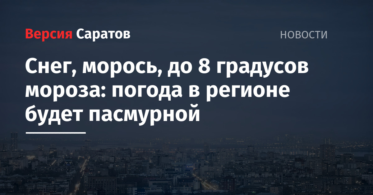 В Саратове ожидается облачная погода с прояснениями. Ночью будет небольшой снег, а днем легкие осадки, преимущественно в виде снега или мокрого снега. Местами на улицах будет туман с видимостью 500 — 1000 метров и гололед толщиной до 5 мм. Синоптики прогнозируют метель. Ветер подует юго-западный со скоростью 5-10 м/с и порывами до 14 м/с. Температура ночью составит -4…-6 градусов, а днем 0…+2 градуса.