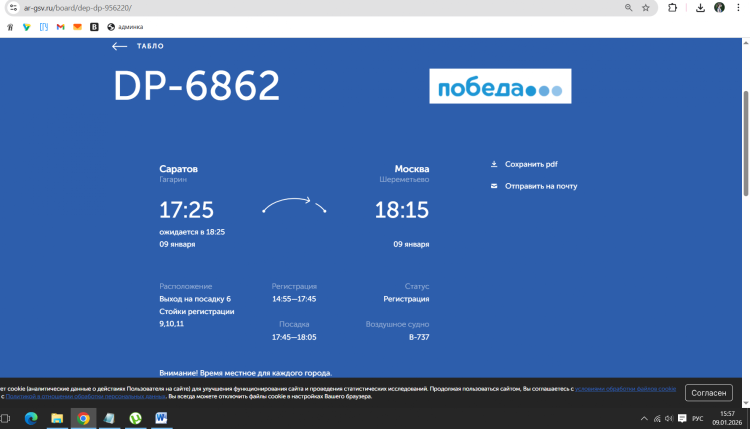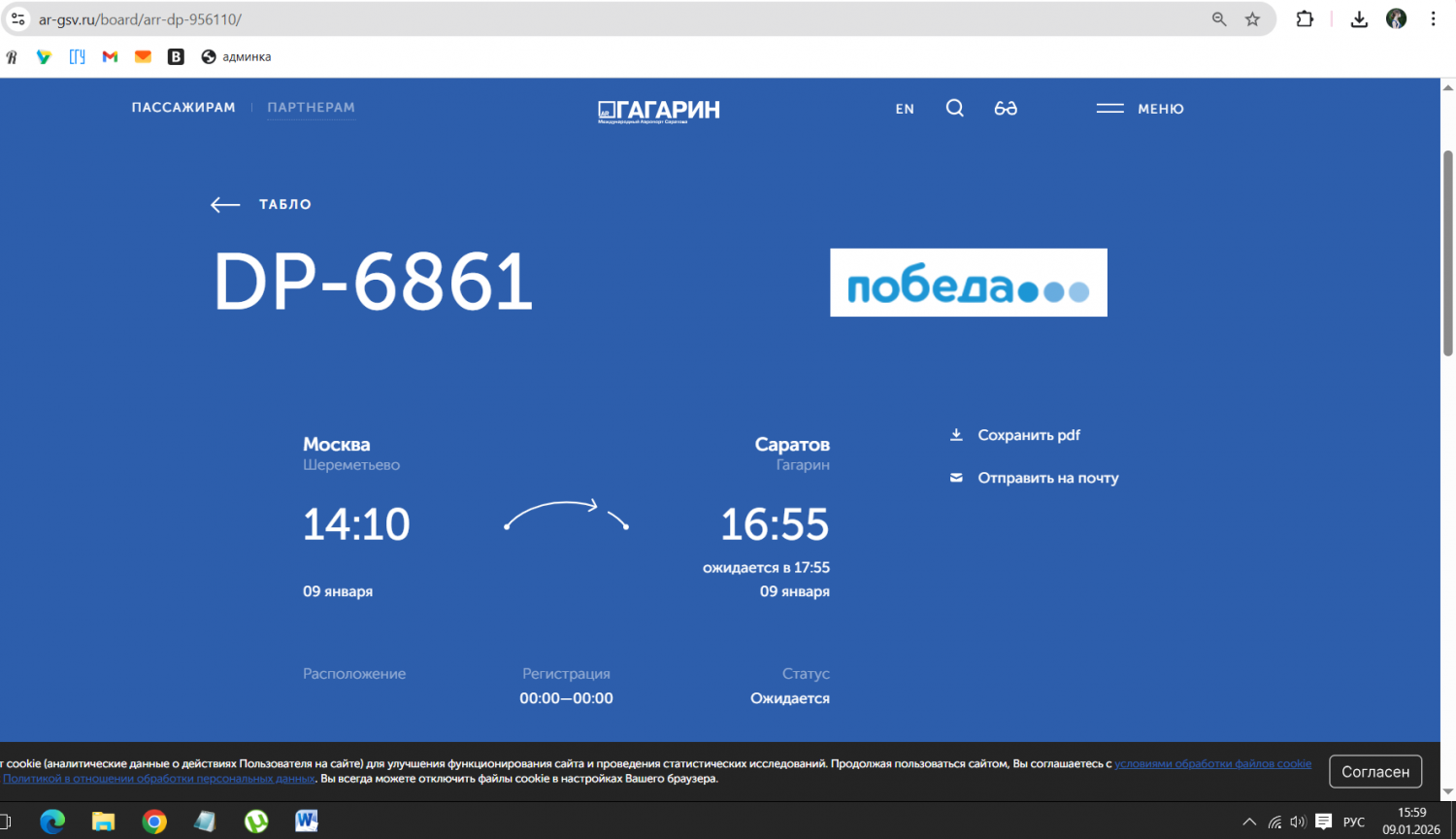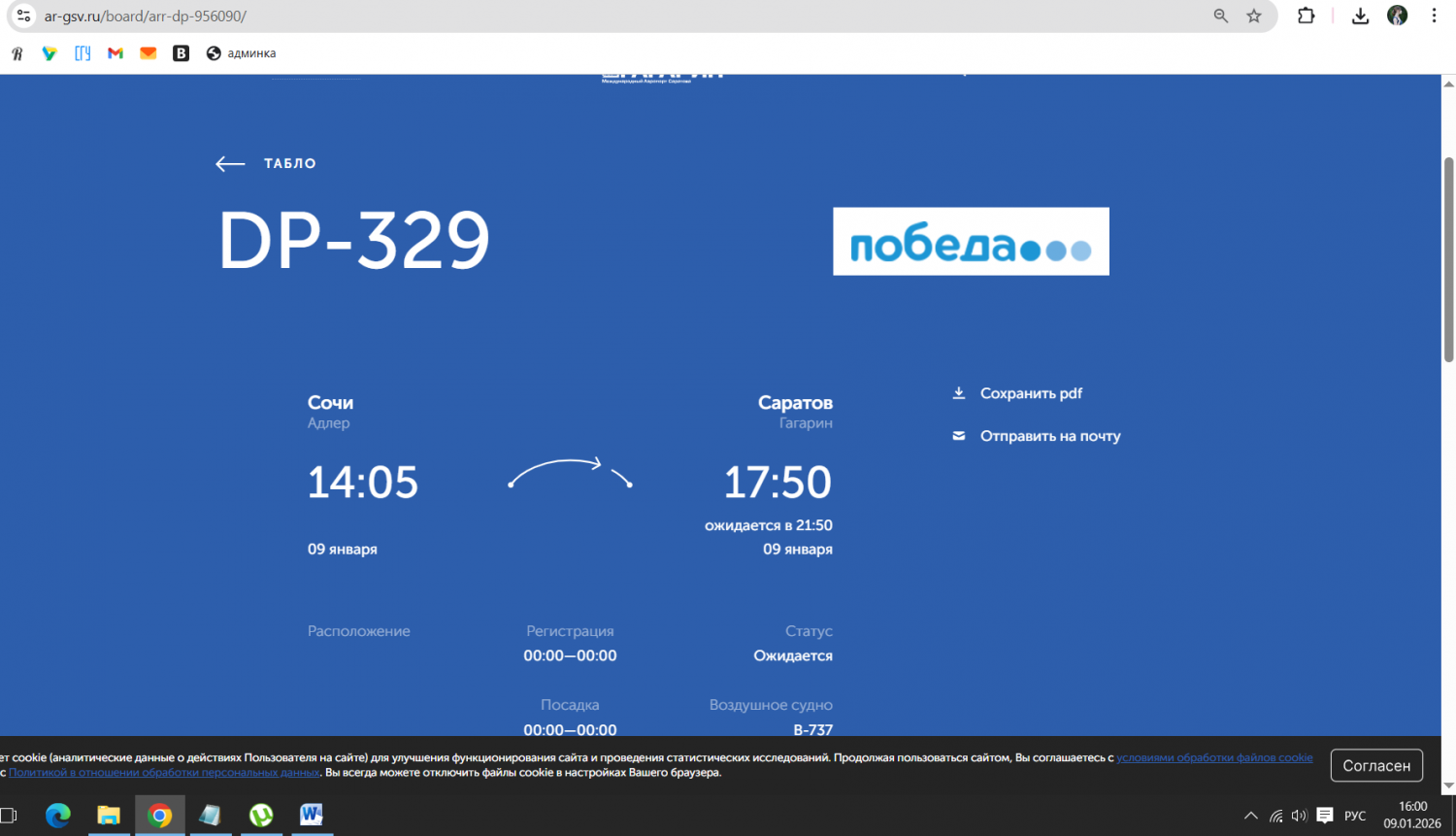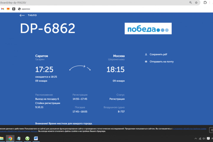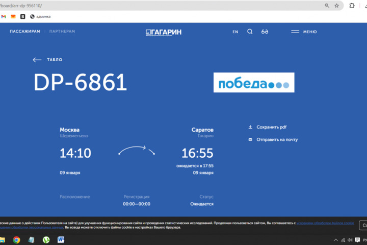 Сегодня, 9 января, в саратовском аэропорту «Гагарин» задерживаются рейсы. Это следует из онлайн-табло воздушной гавани.