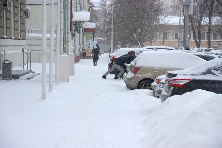 Спустя несколько часов улицы областного центра частично освободили от снега. Наиболее тщательно был очищен центр: Рахова, Кирова, Волжская. На улицы вышли муниципальные дворники и сотрудники управляющих компаний. В то же время большую часть работы выполняли работники организаций, расположенных в центре города: они самостоятельно очищали территорию перед входами в магазины, кафе и торговые центры.