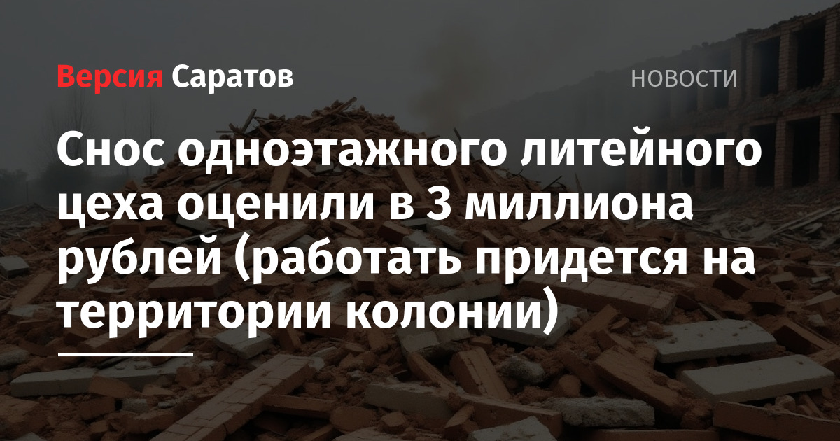 На официальном сайте для размещения госзаказа появилось извещение о проведении торгов, предметом которых является «выполнение работ по сносу нежилого здания» в Пугачеве. Заказчиком выступает исправительная колония № 17 УФСИН России по Саратовской области.