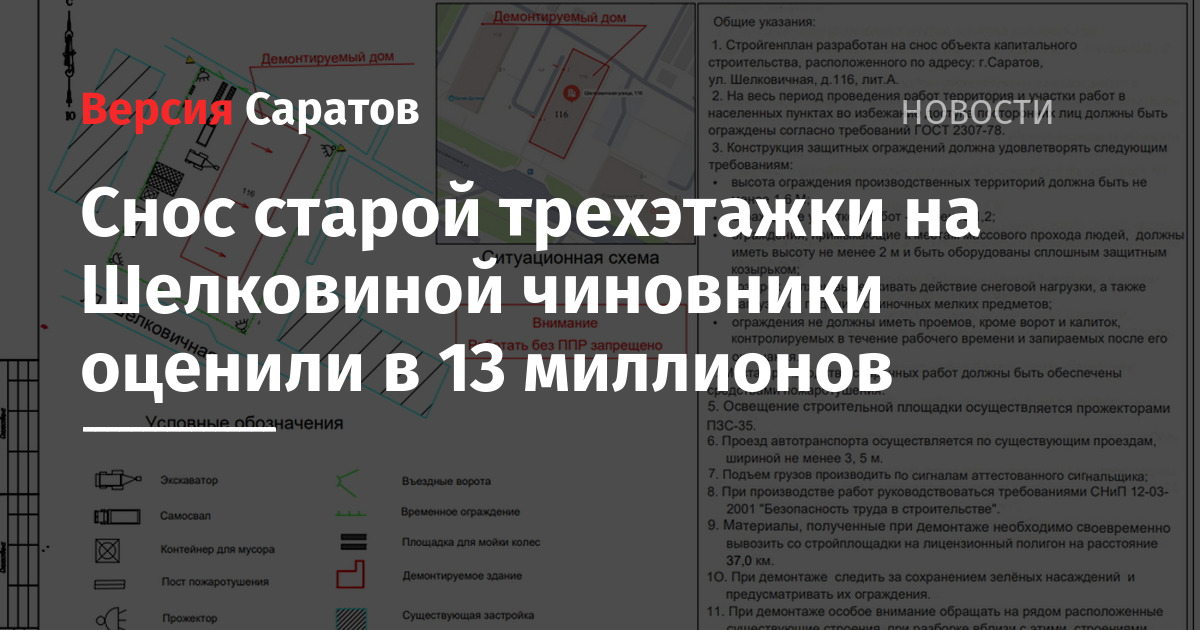 Ранее сегодня были объявлены другие торги на снос двухэтажного дома № 55А на 1-м Нефтяном проезде в Заводском районе Саратова. Работу оценили в 3,7 миллиона рублей.