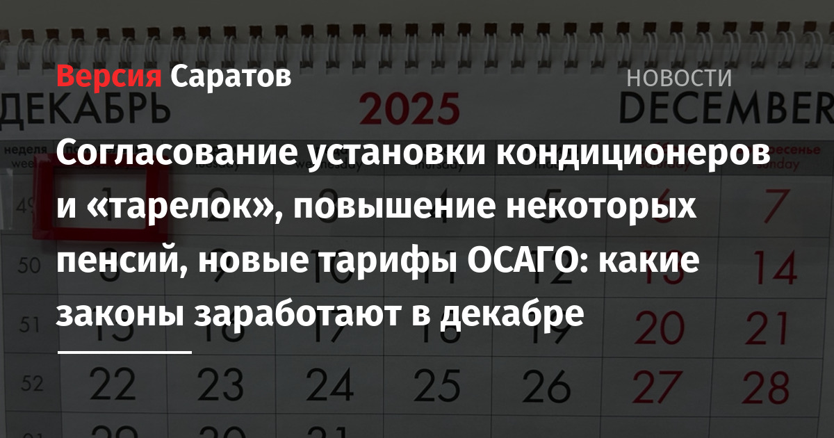 Согласование установки кондиционеров и «тарелок», повышение некоторых пенсий, новые тарифы ОСАГО: какие законы заработают в декабре