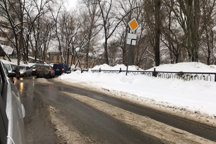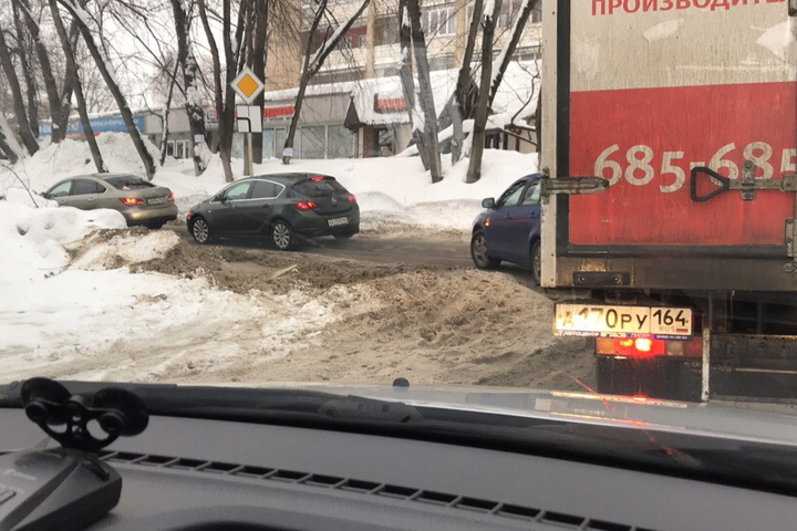 Дорога здесь двухполосная в обоих направлениях. Но проехать можно только по одной. Поэтому в часы пик здесь собираются пробки. Вторая часть дороги просто завалена снегом. Почему районная администрация игнорирует эту проблему, а чиновники бездействуют?» — недоумевает горожанин.
