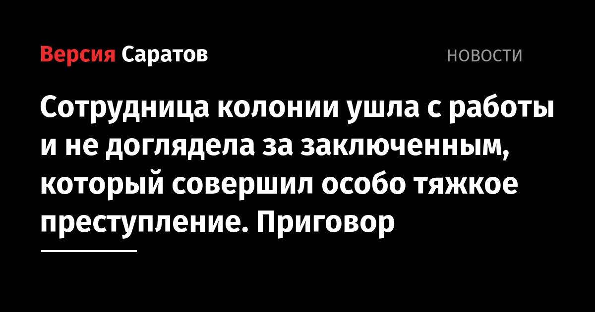 Установлено, что подсудимая работала в должности оператора группы надзора отдела безопасности исправительного учреждения. В январе 2022 года женщина, находясь на службе, халатно, то есть не исполняя свои должностные обязанности, самовольно покинула пост оператора поста видеоконтроля. Жительница Красноармейского района перестала следить за заключенными. В это время один из них совершил особо тяжкое преступление (какое именно, не уточняется).