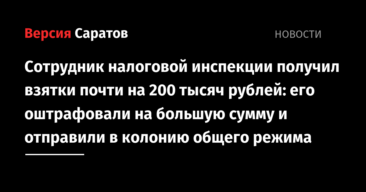 Сотрудник налоговой инспекции получил взятки почти на 200 тысяч рублей: его оштрафовали на большую сумму и отправили в колонию общего режима