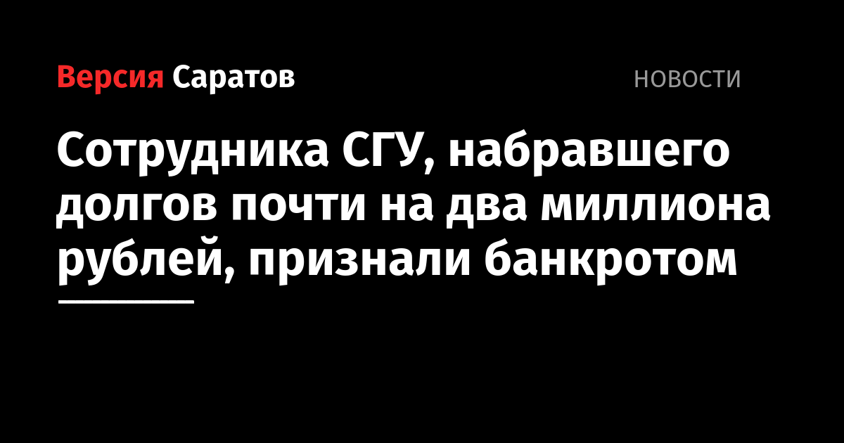 Сотрудника СГУ, набравшего долгов почти на два миллиона рублей, признали банкротом