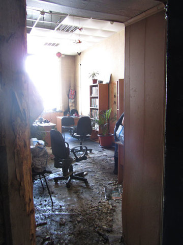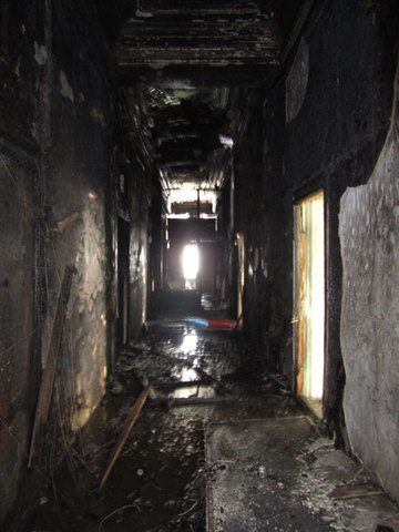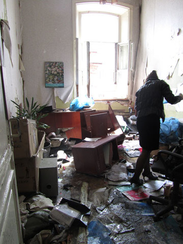 Сотрудники офисов, располагавшихся в сгоревшем здании гостиницы «Европа», смогли наконец забрать уцелевшие вещи. Нескольким комнатам повезло больше, чем другим. Одни уцелели благодаря тому, что были закрыты двери, другие оказались вдалеке от основного очага возгорания, поэтому сохранились документы и оргтехника.